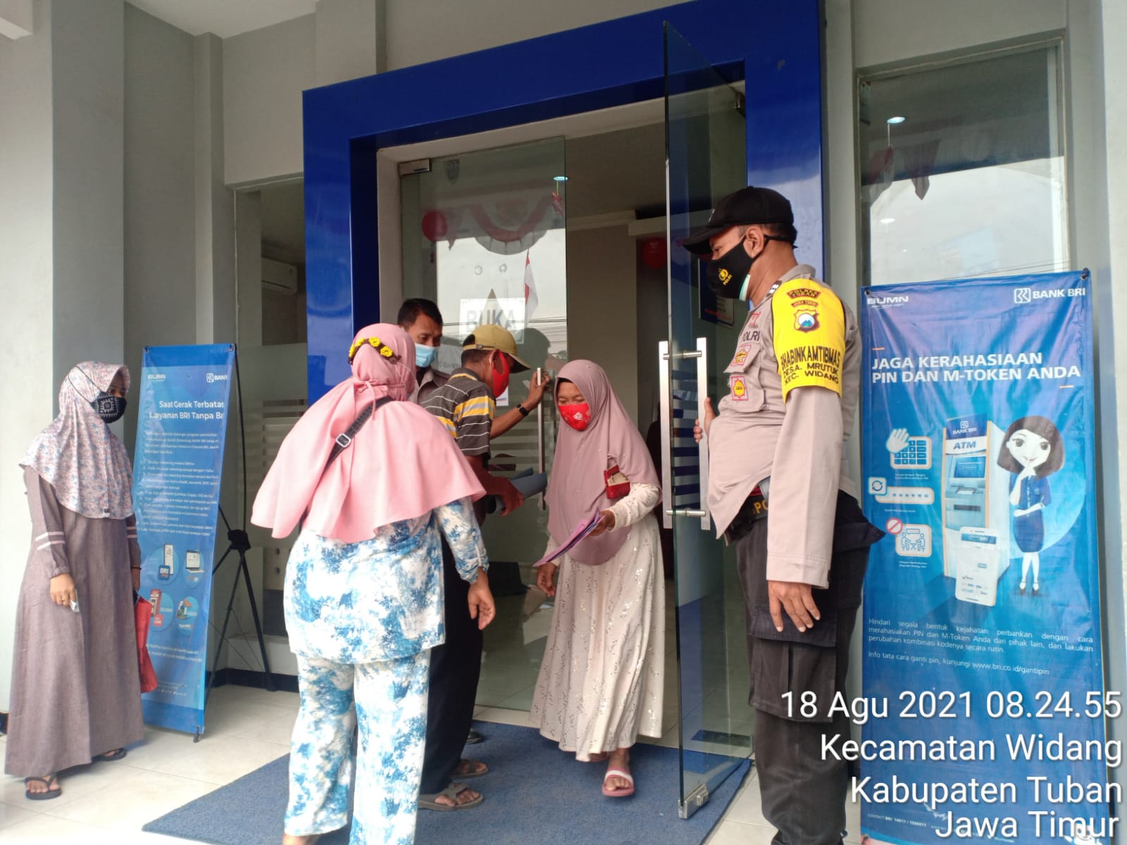 Banyaknya penerima BPUM dan pengantar berpotensi pada kerumunan di kantor BRI. Mengantisipasi hal demikian, Polsek Widang melaksanakan kegiatan pengamanan.