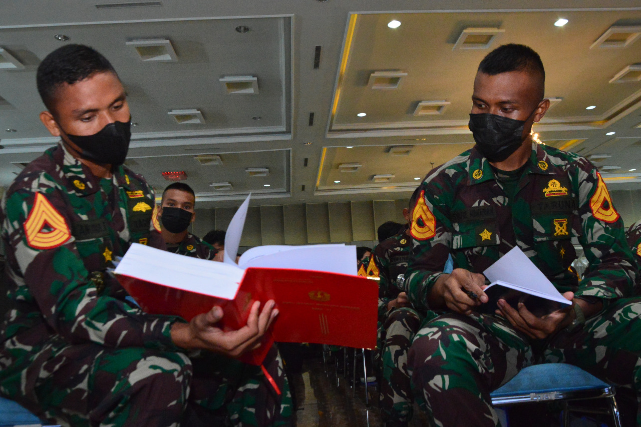 MASPOLIN || AAL, Surabaya – Perwira dan Taruna Akademi TNI Angkatan Laut (AAL) Tingkat II dan IV Korps Pelaut menerima sosialisasi pemantapan Buku Isyarat Manuvra Armada (BIMA) dari tim Instruktur Koarmada II yang digelar di Gedung Mas Pardi, Kesatrian AAL Bumimoro, Surabaya, Senin (2/8).