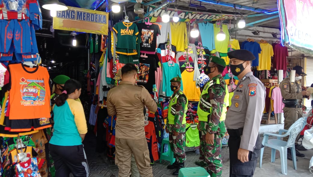 “Dalam Operasi Yustisi Kali Ini Petugas Membagikan Masker Kepada Pengunjung pasar benteng pancasilaDan Menghimbau Agar Selalu Menerapkan Prokes, Total 150 Masker dibagikan”. Tambah M.K Umam