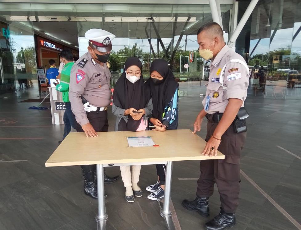 “Dalam Operasi Yustisi Kali Ini Petugas mengedukasi pentingnya aplikasi Peduli Lindungi Kepada Pengunjung Mall Dan Menghimbau Agar Selalu Menerapkan Prokes, ”. Tambah M.K Umam