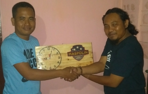 ” Sebuah Jam Dinding dari kayu bergambarkan Logo Maspolin ini semoga Bisa menyangati teman teman dalam Mengembangkan Maspolin di Kabupaten Bojonegoro, ujar Teguh.