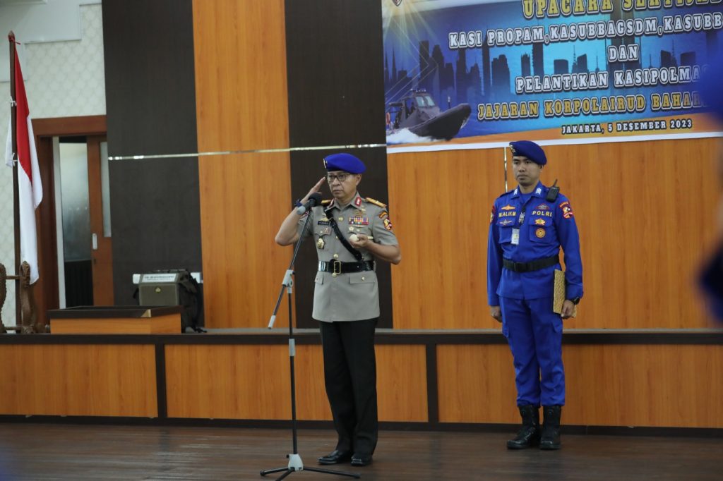 JAKARTA – Maspolin.id|| Plt. Kakorpolairud Brigjen Pol M. Yassin Kosasih, S.I.K., M.Si., M.Tr.Opsla. Pimpin Upacara Sertijab Kasipropam, Kasubagsdm Bagrenmin, Kasubaggatihta Bagkatprof dan Kasipolmasair Subdit Binmasair Ditpolair Korpolairud Baharkam Polri di Aula lantai 3 gedung Widodo Budidarmo Ditpolair Korpolairud Baharkam Polri, Tanjung Priok Jakarta Utara, Selasa (05/12/2023).