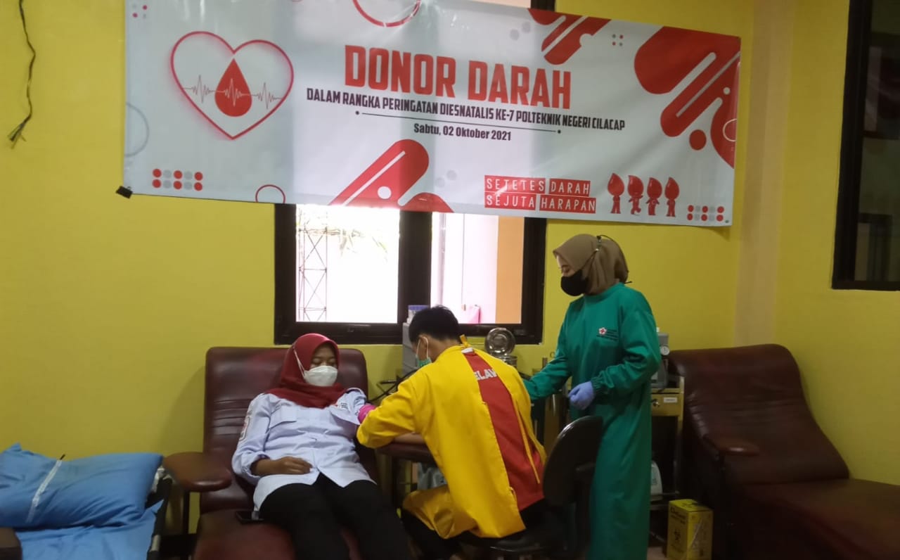 Salah satu kegiatan donor darah dilaksanakan dalam rangka Dies Natalis Politeknik Negeri Cilacap (PNC) ke-7 dengan menggandeng Palang Merah Indonesia (PMI) Kabupaten Cilacap.
