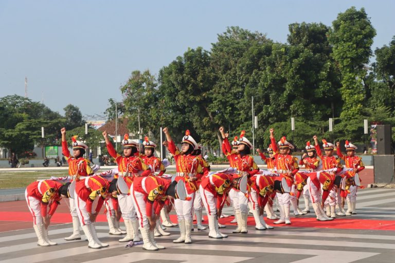 Sukabumi – Maspolin.id|| Puluhan Polisi Cilik binaan Polres Sukabumi Kota unjuk gigi, menampilkan kedisiplinan dan kekompakan baris berbaris serta senam Lalulintas di hadapan unsur Forkopimda Kota Sukabumi saat mengisi peringatan Hari Bhayangkara ke-78 di podium lapang Merdeka Kota Sukabumi, Senin (1/7/2024).