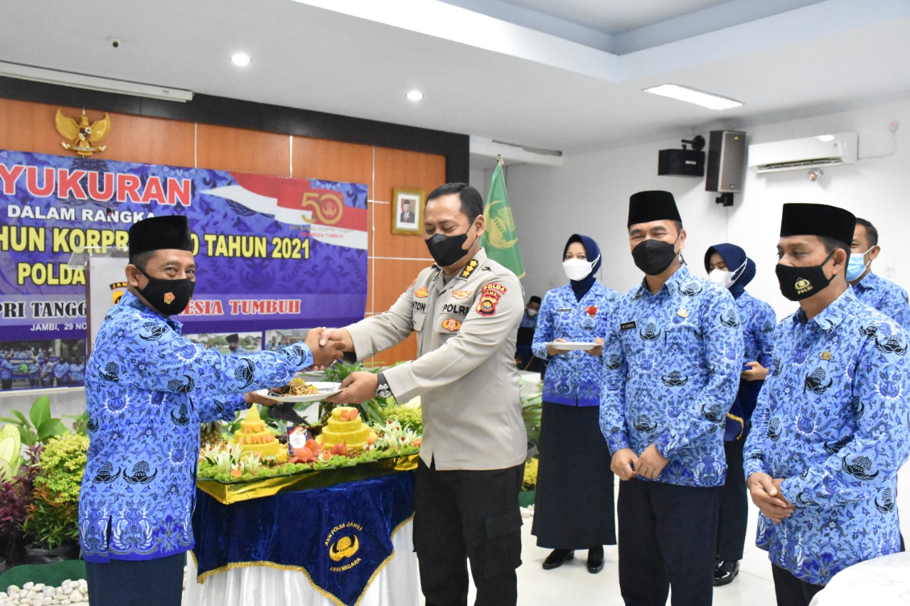 Dalam sambutannya, Pembina Harian Korpri Kombes Pol Anton Soedjarwo mengucapkan selamat ulang tahun Korpri, pada segenap PNS di Polda Jambi dan jajaran. Dia meminta untuk tetap membantu kerja-kerja Polda Jambi.