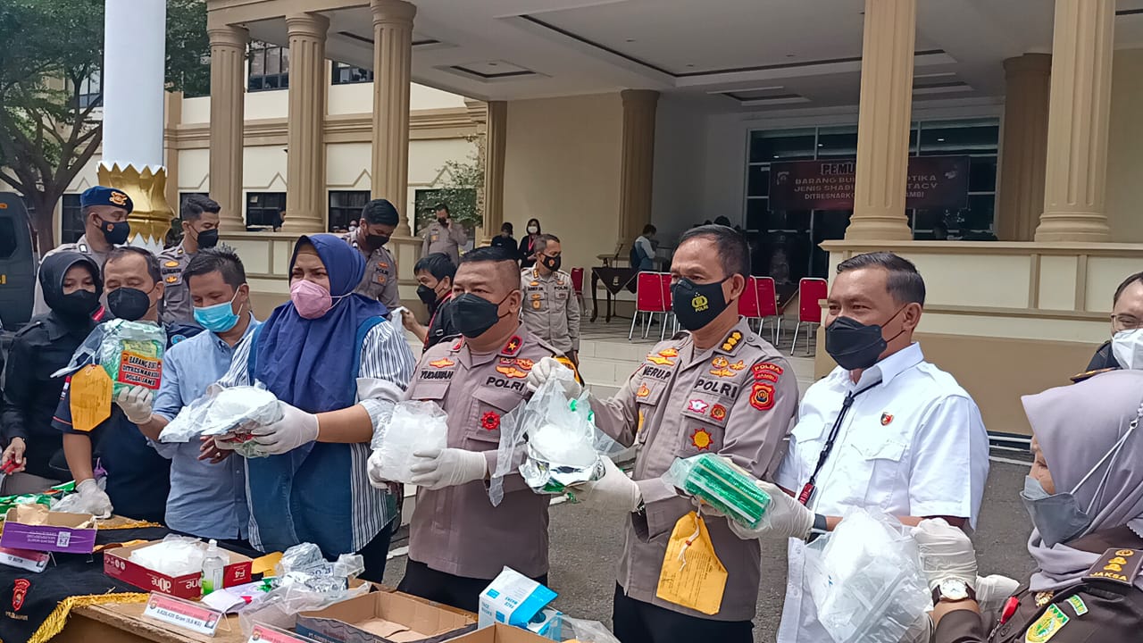 Polda Jambi Musnahkan Barang Bukti 9.6 Kg Sabu dan 12 Butir Ekstasi Dengan 7 Tersangka