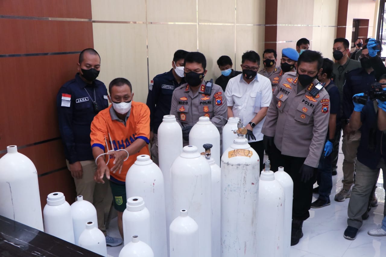 Kapolda Jawa Timur Irjen Pol Nico Afinta, didampingi Kabid Humas Polda Jatim dan Dirreskrimsus Polda Jatim, menjelaskan, Ditreskrimsus Polda Jatim berhasil mengungkap kasus mengedarkan atau menjual alat kesehatan tanpa izin edar, dengan modus operandi bahwa tabung apar di modifikasi yang kemudian menjadi tabung oksigen yang dijual kepada masyarakat seharga 4 juta.