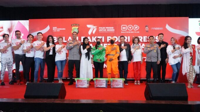 PMJ – Maspolin.id|| Bulan Bakti Polri Presisi Dalam rangka menyambut Hari Ulang Tahun Bhayangkara ke77, Polda Metro Jaya berkolaborasi dengan PT. Tripar Multivision Plus Tbk (MVP) menyelenggarakan program Donor Darah bertajuk “Life Heroes”.