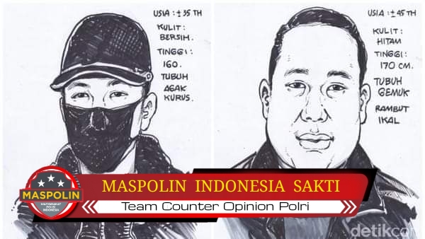 Berdasarkan rekaman CCTV dan keterangan saksi-saksi, polisi membuat sketsa wajah kedua pelaku tersebut.