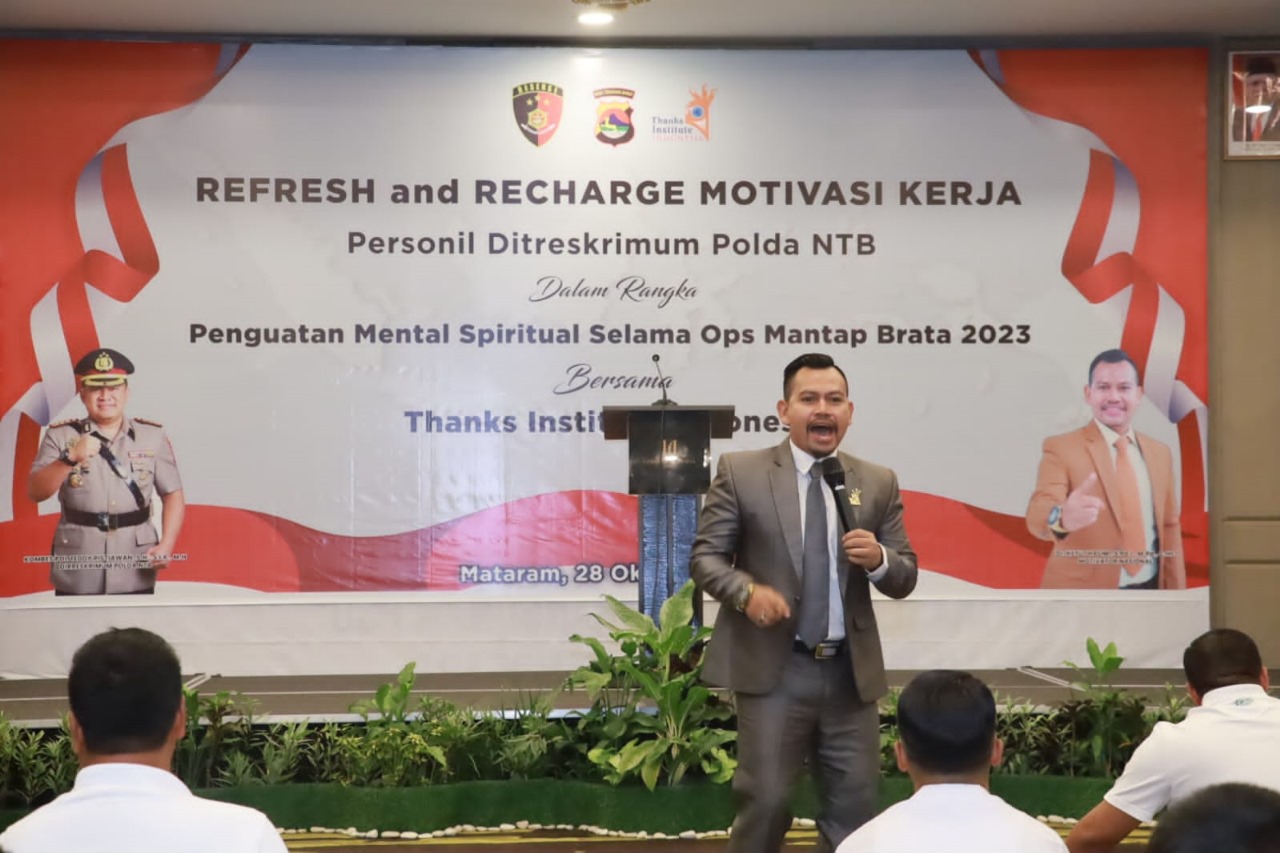 Dirreskrimum Polda NTB dan Para Kasubdit mengucapkan terima kasih kepada semua anggota yang hadir dan juga mengucapkan terima kasih kepada motivator dari Thanks Institute Indonesia karena acara berjalan lancar dan khidmat.