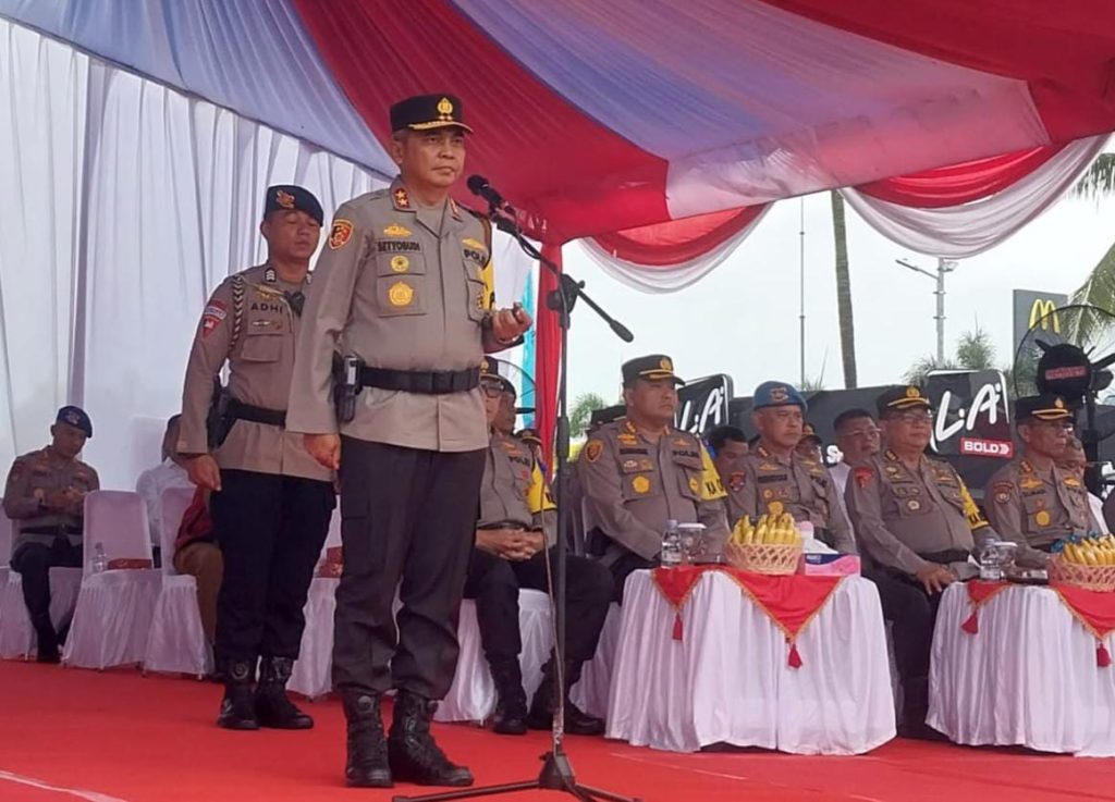 Apel gelar Pasukan di pimpin oleh Kapolda Sulut Irjen Pol. Drs . Setyo Budiyanto,S.H.,M.H diitandai dengan pemeriksaan pasukan serta penyematan pita tanda operasi kepada perwakilan personel.