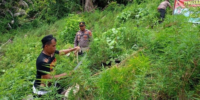 Kapolsek Pulo juga menjelaskan pemusnahan ladang ganja itu dilakukan pada Jumat (23/6/23) lalu. Titik pertama seluas tiga hektare lahan yang ditanami ganja dicabut polisi.