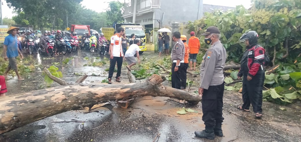 “Dari Kejadian Pohon tumbang ini telah menimpa sebuah truk nopol S 8825 UK yang sedang di parkir di depan rumah. Akibatnya, truk yang dikemudikan Harianto warga Dusun Tugu, Desa Jolotundo, Kecamatan Jetis, Kabupaten Mojokerto mengakibatkan kaca depan truk sebelah kiri pecah”, Kata Kapolsek Jetis