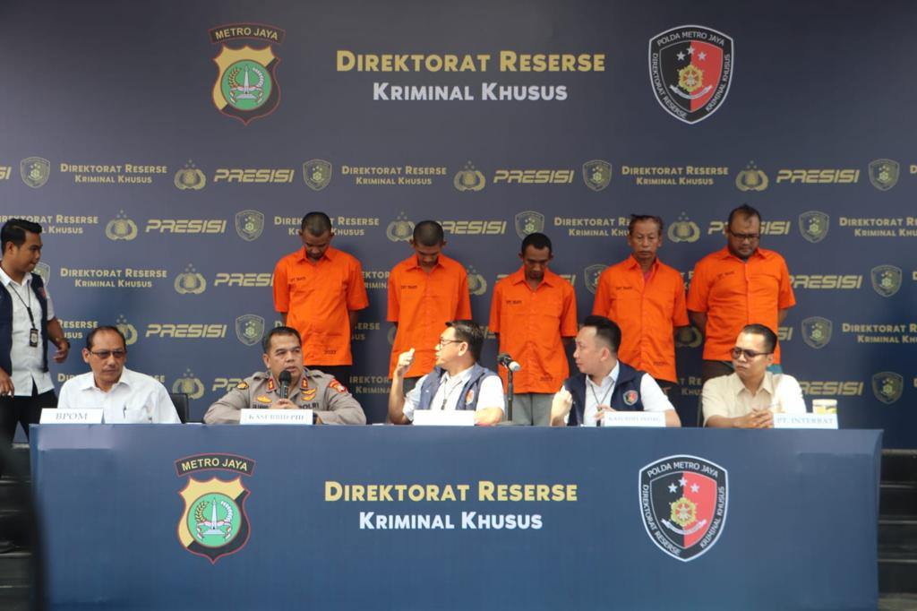 PMJ – Maspolin.id|| Subdit Indag Ditreskrimsus Polda Metro Jaya menangkap 5 pengedar obat tanpa izin edar dan suplemen palsu dengan total barang bukti 77.061 butir/botol, senilai Rp 130,4 miliar.