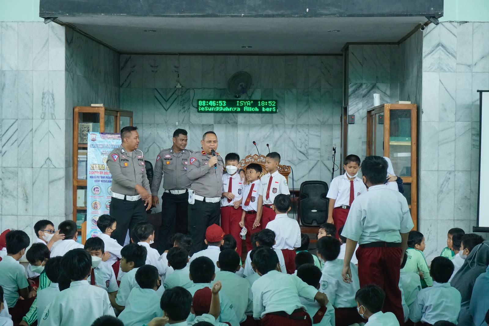 Cilacap – Maspolin.id|| Satlantas Polresta Cilacap melaksanakan kegiatan sosialisasi tertib berlalu lintas dalam rangka Operasi Zebra Candi 2022 kepada pelajar SD Al Irsyad Cilacap.
