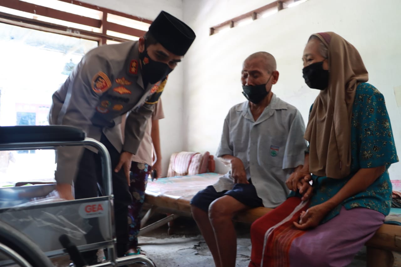 “Mbah yang sabar ya dan selalu membaca sholawat semoga diberikan kesembuhan, saya datang memberikan bantuan berupa kursi roda dan sedikit sembako, Semoga bermanfaat nggih,” ucap AKBP Rofiq
