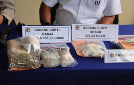 “Barang bukti lainnya 5 bungkus plastik ukuran sedang dan satu toples kecil berisikan ganja seberat 751,68 gram,” ujarnya.