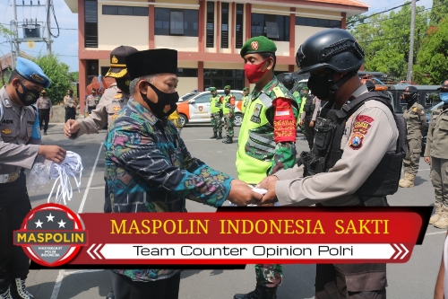 Sebelum kegiatan di mulai, Kapolres Bojonegoro, AKBP M. Budi Hendrawan, SIK, MH yang didampangi KH. Alamul Huda (Gus Huda), Ketua Forum Kerukunan Umat Beragam (FKUB) Kabupaten Bojonegoro, dan perwakilan dari Kodim 0813/Bojonegoro menyerahkan masker secara simbolis kepada perwakilan dari Kodim 0813/Bojonegoro, Polres Bojonegoro, Pemerintah Kabupaten Bojonegoro, Security, Senkom Polri dan pengurus Bhayangkari Cabang Bojonegoro.