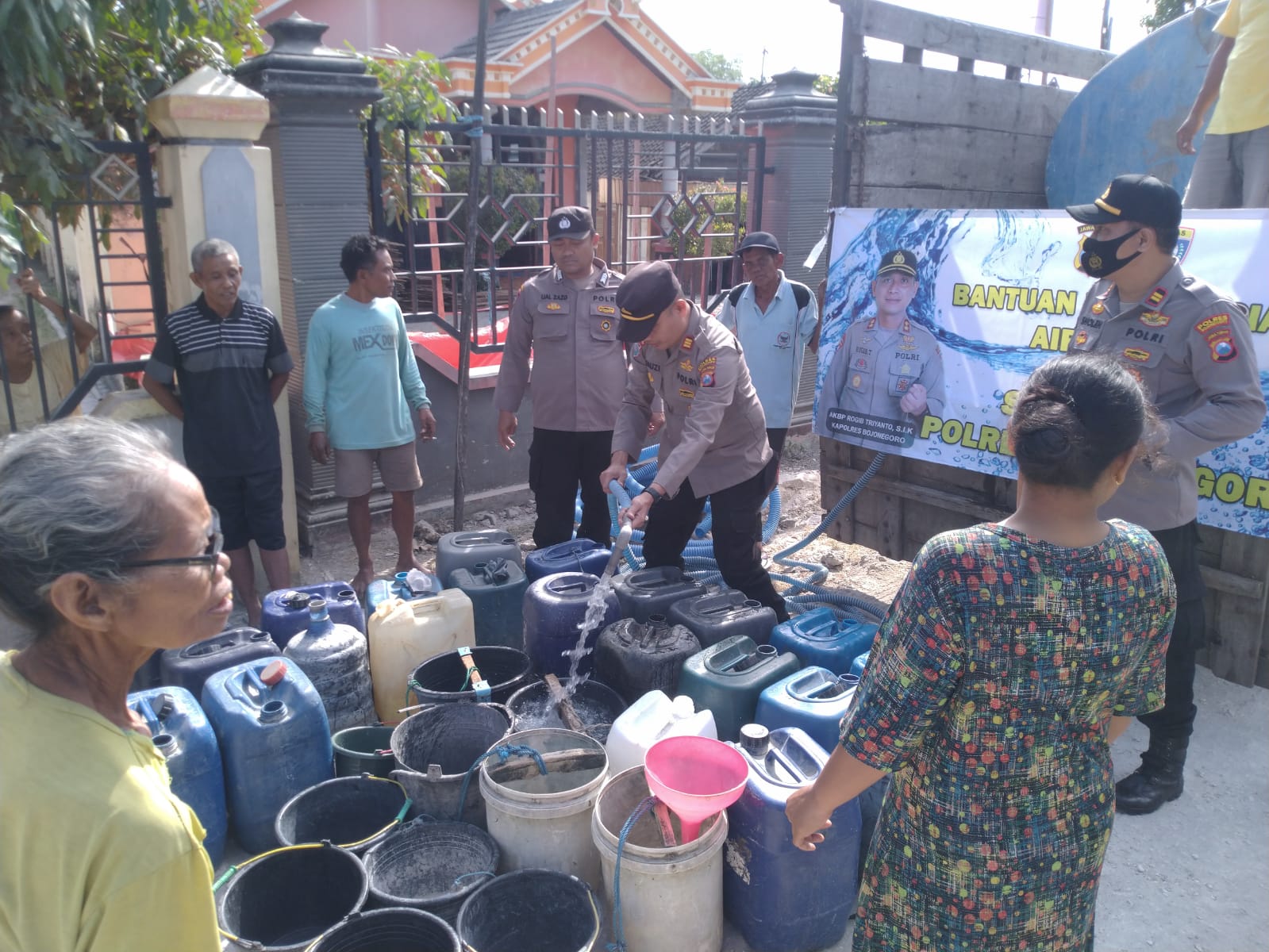 Kapolres Bojonegoro, AKBP Rogib Triyanto, SIK melalui Kasat Binmas, AKP Agus Elfauzi mengatakan penyaluran bantuan 1 truk tangki berisi 5000 liter air bersih ini disalurkan bagi warga masyarakat yang mengalami kekeringan dan krisis air bersih tepatnya di Desa Duwel Kecamatan Kedungadem.
