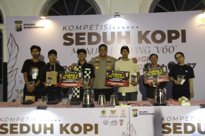 Bondowoso – Maspolin.id|| Kompetisi Seduh Kopi yang digelar Polres Bondowoso dalam rangka hari Bhayangkara ke 77 dinilai mampu membangkitkan kembali brand Bondowoso Republik Kopi (BRK).