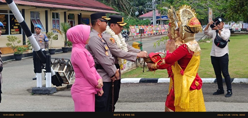 Dharmasraya, SUMBAR – Maspolin.id|| Pada Sabtu (13/1/2024), Polres Dharmasraya menggelar acara pisah sambut Kapolres baru dan lama dengan melibatkan tradisi pedang pora. Acara berlangsung di Mapolres Dharmasraya dan menjadi momen penting dalam serah terima jabatan. Pada Sabtu (13/1/2024), pukul 13.00 WIB.