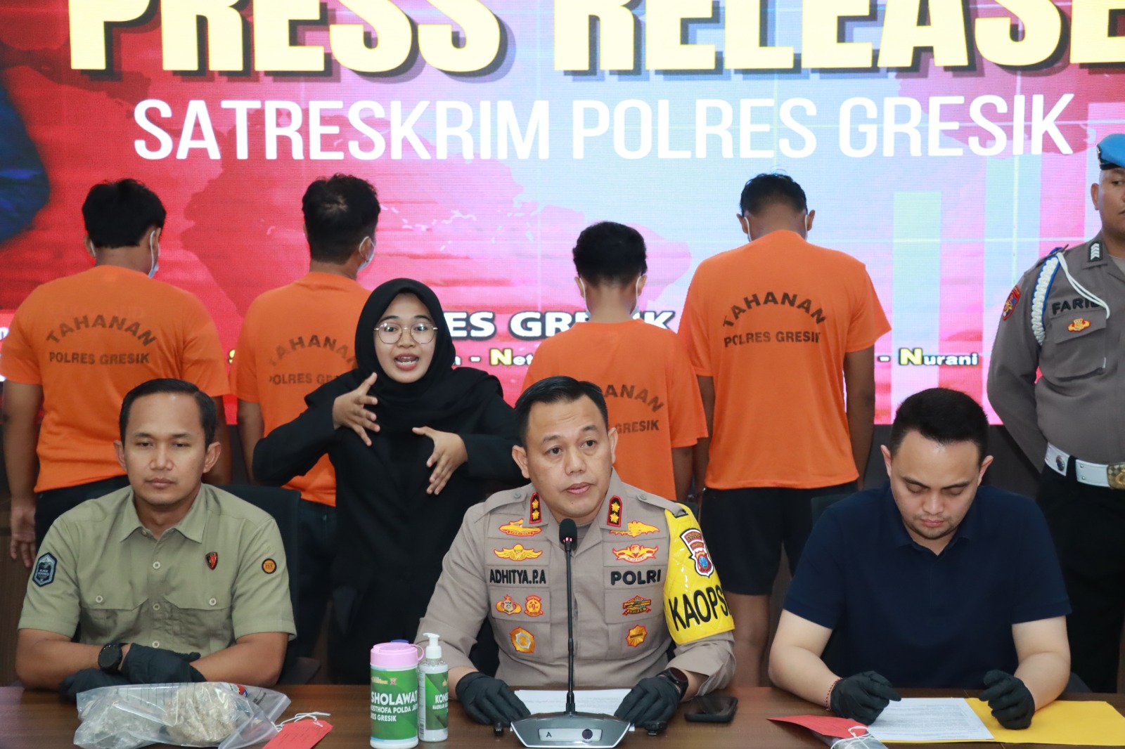 “Hasil gelar perkara ada Delapan orang yang ditetapkan tersangka,” ujar AKBP Adhitya Panji Anom di ruang Rupatama Sarja Arya Racana Polres Gresik. Rabu (22-11-2023).