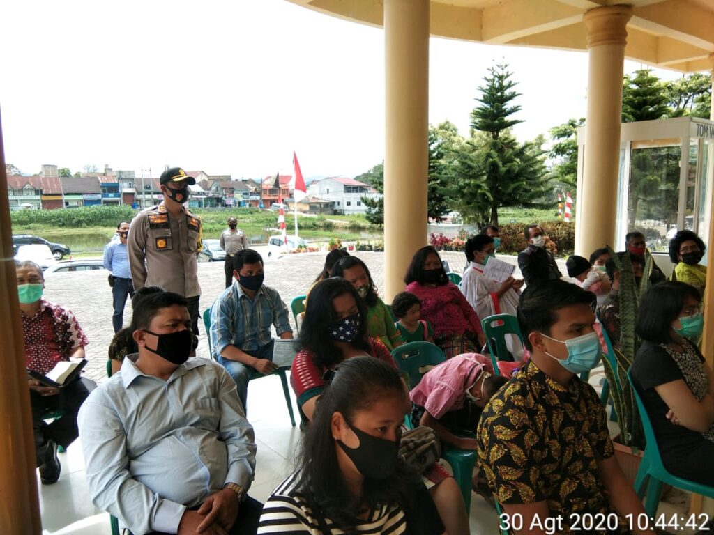 Doloksanggul, Maspolin.id—Kapolres Humbahas AKBP RUDI HARTONO, S.I.K., MM. melaksanakan himbauan pendisiplinan protokol kesehatan kepada Jemaat di 2 (Dua) Gereja yang ada disekitaran kecamatan doloksanggul