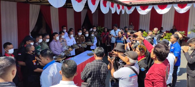 Jember – Maspolin.id|| Polres Jember Selasa (2/8/2023) melakukan pemusnahan barang bukti ganja dengan berat 10 kg di halaman Mapolres Jember, dengan disaksikan oleh jajaran Formopimda.