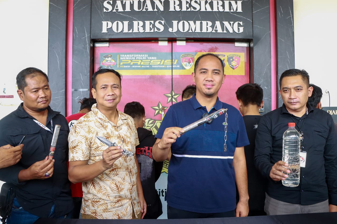 Di antaranya, sebilah sajam, ruyung, tujuh unit HP, sepeda motor, serta satu botol berisi minuman keras jenis arak. Seluruh barang bukti itu juga diamankan di Polres Jombang.
