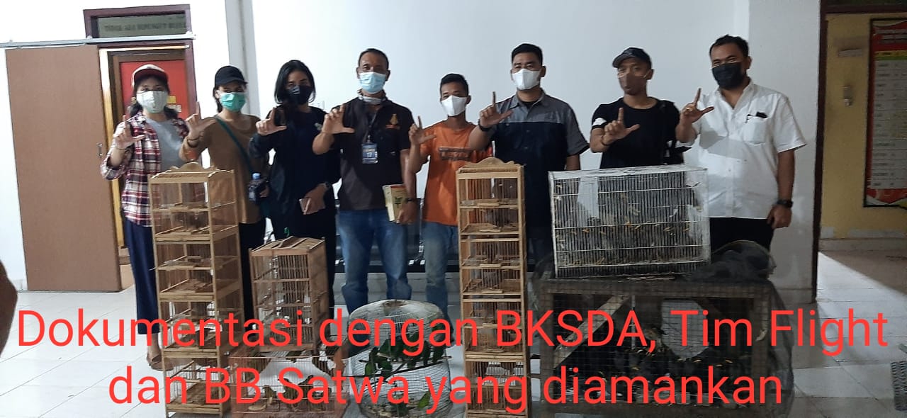 Sesampai dilokasi ditemukan adanya aktivitas masyarakat terhadap pemeliharaan satwa burung serindit melayu dan burung jalak kerbau. Kemudian tim menertibkan aktivitas masyarakat itu dan mengamankan satwa tersebut berupa 53 ekor burung serindit melayu warna hijau dan 87 ekor burung jalak kerbau warna hitam.