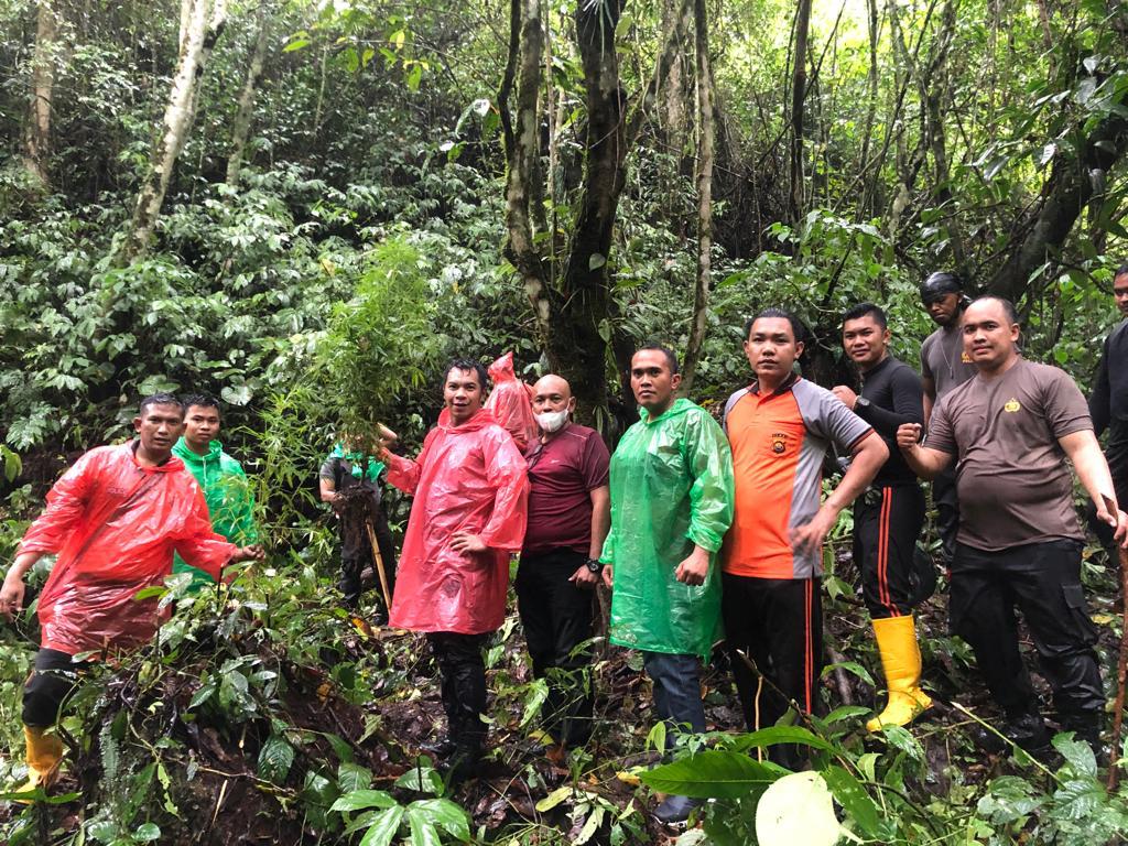Kerinci – Maspolin.id// Polres Kerinci berhasil temukan Lokasi Penyemaian Ganja seluas 0.5 HA di Hutan Adat Desa Lempur Mudik, Kec.Gunung Raya, Kab. Kerinci, Kamis (4/10/21).