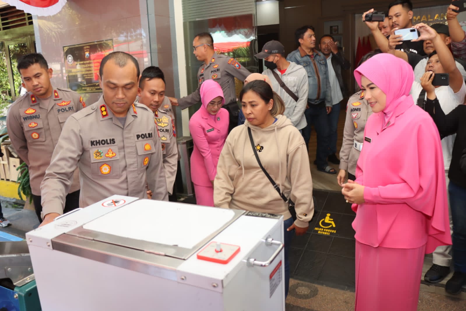 Malang – Maspolin.id|| Kepolisian Resor Malang, Polda Jatim, memberikan bantuan peralatan usaha kepada keluarga korban tragedi Kanjuruhan, di Mapolres Malang, Kepanjen, Kabupaten Malang, Jumat (11/8/2023).