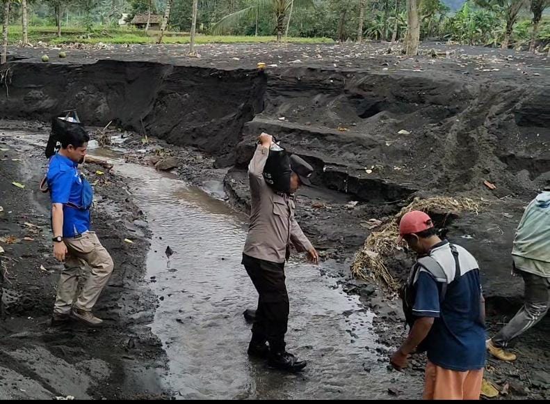 “Kepolisian bersama perangkat Desa Purwoharjo meninjau langsung rumah warga yang terisolir karena akses utamanya yang melewati jembatan rusak akibat diterjang banjir lahar dingin Gunung Semeru beberapa waktu yang lalu,” ungkapnya.