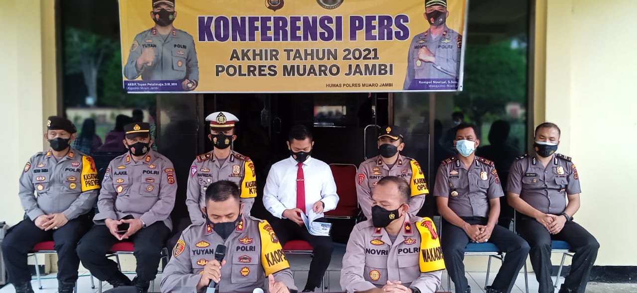 Kapolres Muaro Jambi AKBP Yuyan Priatmaja S.I.K,.MH mengatakan “konferensi hari ini digelar memaparkan hasil kinerja Satuan Dan jajaran polres Muaro Jambi di akhir tahun 2021