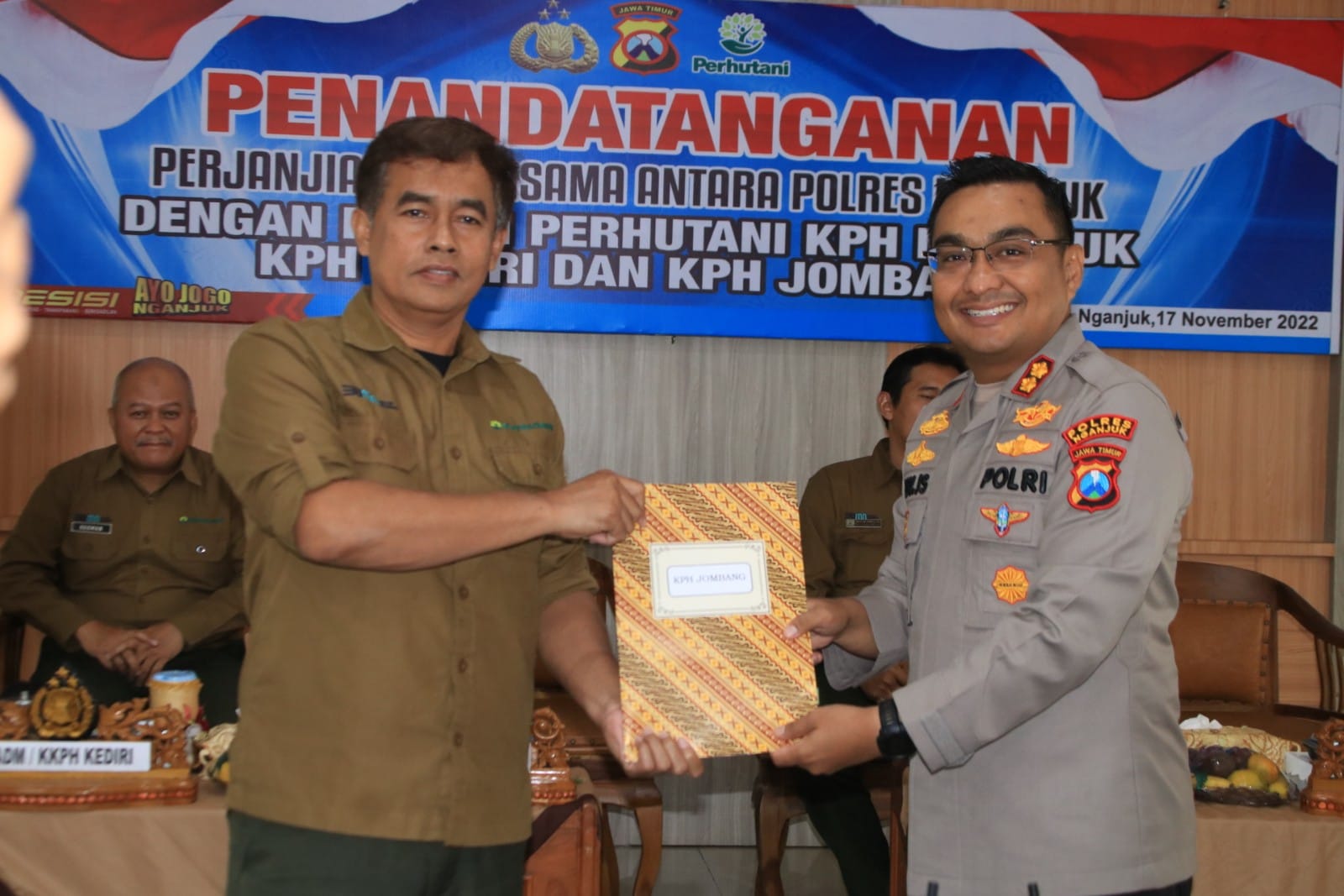 Hal ini disampaikan AKBP Boy Jeckson pada acara penandatanganan MOU (Memorandum of Understanding) terkait kerja sama Polres Nganjuk dengan Perum Perhutani KPH Nganjuk, KPH Jombang, dan KPH Kediri untuk penegakan hukum di Rupatama Polres Nganjuk, Kamis (17/11/22).