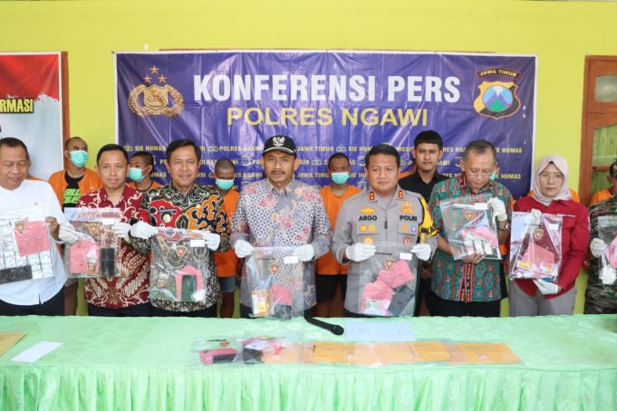 “Polres Ngawi berhasil mengamankan 15 orang yang diduga sebagai pengedar dan pengguna narkotika serta barang bukti berupa 2, 64 gram sabu-sabu dan 640 butir pil koplo,” tutur Kapolres Ngawi