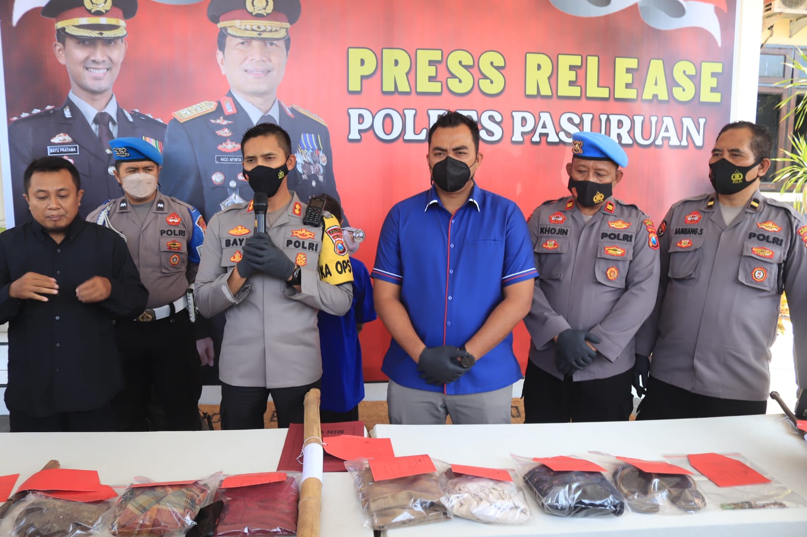 Kapolres Pasuruan AKBP Bayu Pratama Gubunagi,SH,SIK dalam Press Release yang didampingi Kasat Reskrim AKP Adhi Putranto Utomo,Kasi Propam, dan Kasi Humas Polres Pasuruan mengatakan bahwa pelaku pembunuhan berhasil ditangkap oleh Sat Reskrim Polres Pasuruan selang 6 jam setelah kejadian.