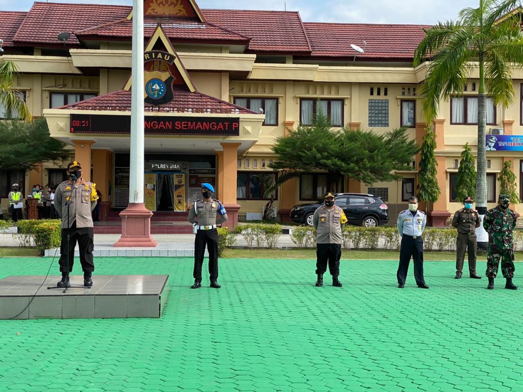 Polres Siak Apel Konsolidasi Secara Serentak Dalam Rangka Penerapan PSBB di di Lapangan Mapolres Siak