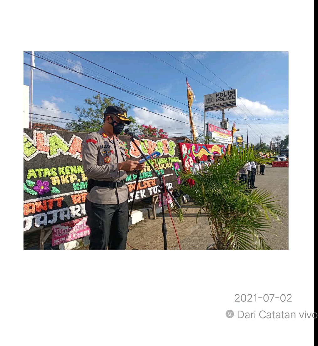 Dimomen Kepolisian Negara Republik Indonesia merayakan hari lahirnya yang ke 75 yakni hari Bhayangkara ke 75 Polres Tulang Bawang Barat meggelar upacara kenaikan pangkat 15 personelnya. Jumat, (2/7/2021).