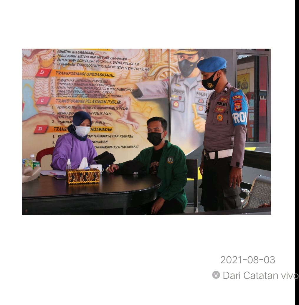 Tubabag, Maspolin—Bersinergi dengan Dinas Kesehatan (Dinkes) melalui PKM Panaragan Jaya telah melaksanakan Vaksinasi dosis 1 (satu) di Mako Polres Tulang Bawang Barat. Selasa, (03/08/2021).