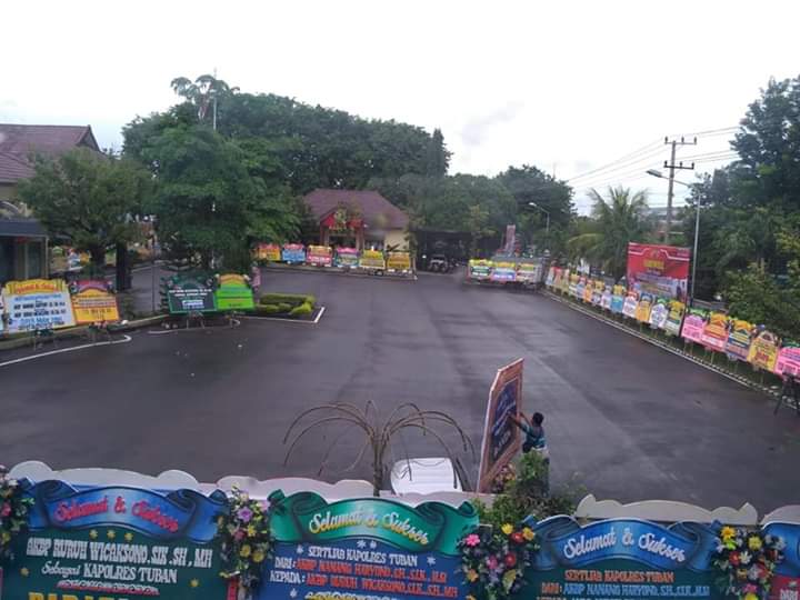 Nampak pula deretan karangan bunga juga dipasang oleh Forkopimda Tuban menghiasi halaman Mapolres Tuban.