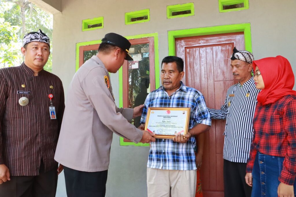 Dalam suasana penuh kehangatan dan kebersamaan, Wakapolresta Cilacap memberikan kunci rumah baru kepada Bapak Amir.