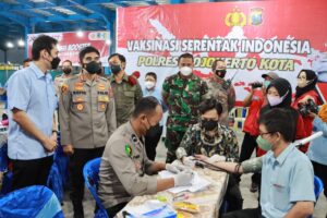 Mendukung kebijakan Presiden Joko Widodo dan Kapolri Jenderal Pol Listyo Sigit Prabowo serta menjadi atensi Kapolda Jatim Irjen Pol Nico Afinta di wilayah hukum Kota Mojokerto Kota sudah dilaksanakan secara optimal Terutama capaian vaksinasi.