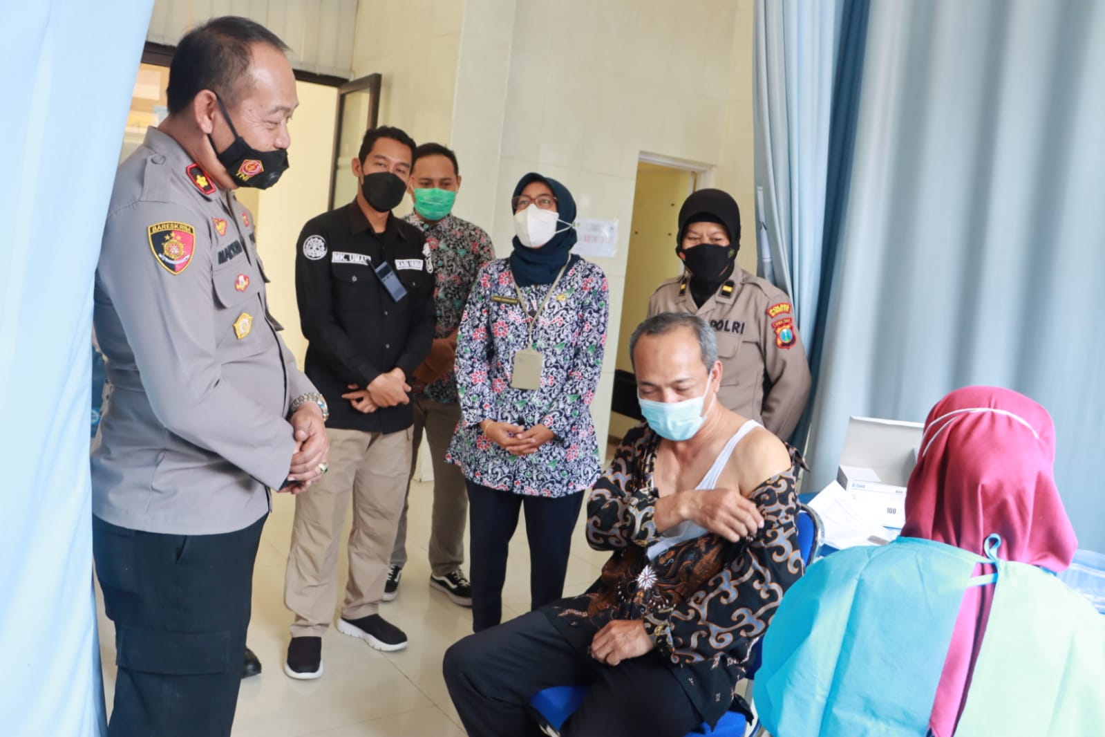 Dalam vaksinasi kali ini, Kapolresta Mojokerto AKBP Rofiq Ripto Himawan, S.I.K., S.H., M.H diwakili Kabagops Polresta Mojokerto Kompol Maryoko, S.H, M.H. bersama pejabat utama meninjau langsung proses Vaksinasi untuk warga di Puskesmas Kranggan sekaligus Vidcon bersama Kapolri yang diwakili oleh Kabaintelkam Polri Komjen. Pol. Drs. H. Ahmad Dofiri, M.Si.