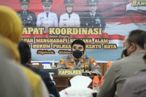 Maspolin.id, Mojokerto – Kapolresta Mojokerto AKBP Rofiq Ripto Himawan, S.I.K., S.H., M.H, dan BPBD Mojokerto Raya melaksanakan rapat koordiansi kesiapan menghadapi bencana alam di wilayah hukum Polres Mojokerto Kota yang bertempat di Aula Prabu Hayam Wuruk, Senin (11/10/21) Siang.