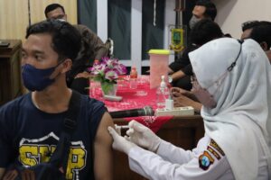 maspolin.id, Mojokerto – Dalam rangka mendukung percepatan vaksinasi, Polresta Mojokerto gelar vaksinasi di Kantor DLH Kota Mojokerto, sekaligus Video Conference Bersama Kapolri Dalam Rangka Vaksinasi Serentak Se-Indonesia di Aula Dinas Lingkungan Hidup Kota Mojokerto Jl. Raden Wijaya Kel. Kranggan Kec. Kranggan Kota Mojokerto, Selasa (22/02/22).