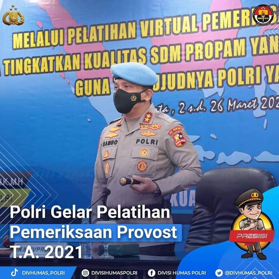 MASPOLIN || JAKARTA – Kadiv Propam Polri Irjen Pol. Ferdy Sambo, S.H., S.I.K., M.H., membuka langsung kegiatan Pelatihan Pemeriksaan Provost T.A. 2021 yang juga dilaksanakan secara virtual kepada 3.000 peserta di wilayah Mabes Polri hingga Polda jajaran.