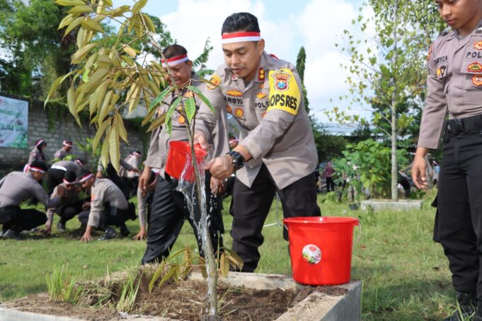 “Kondisi alam sudah tereploitasi sudah cukup banyak, kondisi ini sangat mengkawatirkan mana kala tidak melakukan penanaman pohon”, ujar AKBP Arsya.