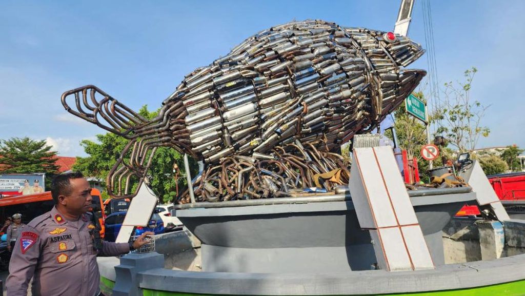 “Dari hasil penindakan tersebut selain dilakukan pemusnahan, hasil barang bukti dijadikan Polri menjadi patung penghias kota. Sekaligus sebagai pengingat masyarakat untuk tidak lagi menggunakan knalpot yang tidak sesuai aturan,” lanjut informasinya.