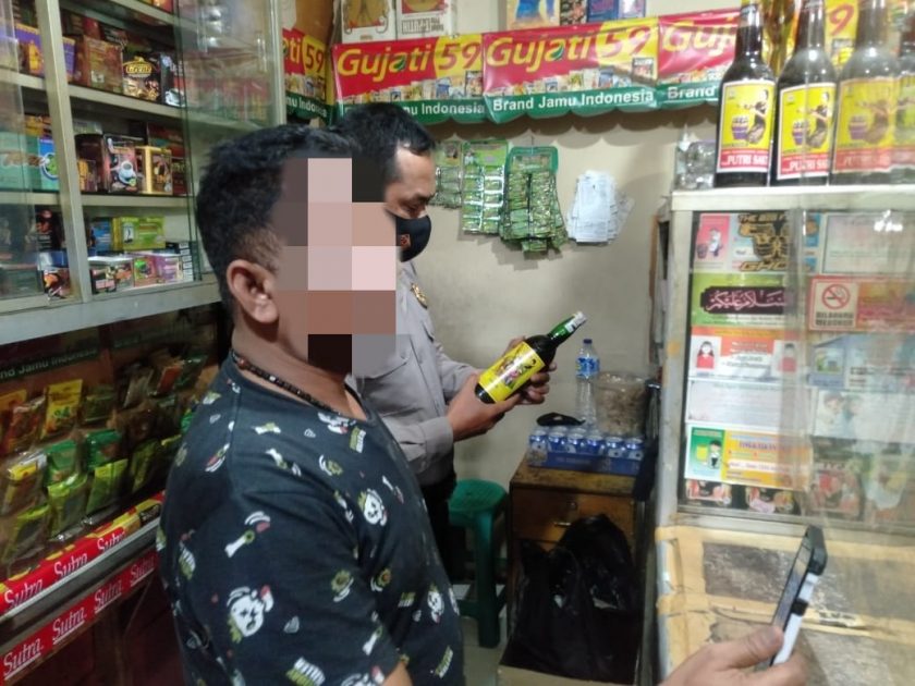 Beberapa Botol miras berbagai jenis yang diamankan Jajaran Polsek Cileunyi Polresta Bandung saat melakukan razia berhasil mengamankan 5 botol miras yang disita dari warung jamu milik Sdr. Bn(42).